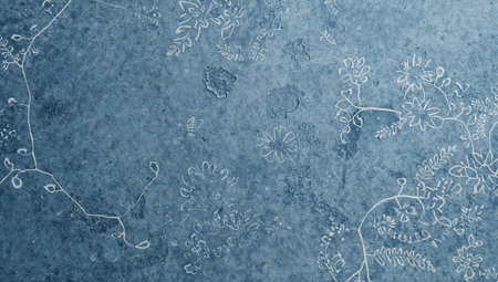 A blue surface shows white floral designs arranged in a pattern. The background appears to have a textured look. This setting can be used for arts, crafts, or design projects.