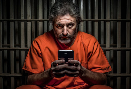 The criminal in the prison cell received a smartphone to communicate with relatives