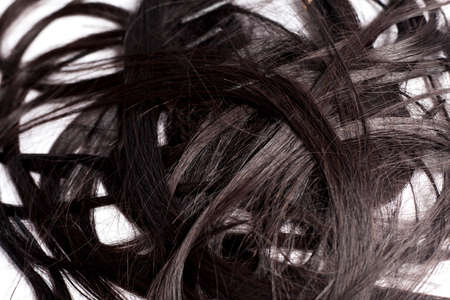 Curvy black long hair isolated on white background, hair extensions close up