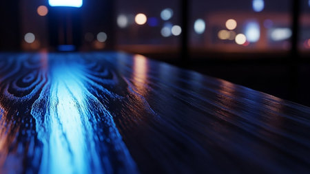 Illuminated blue glass reflects modern architecture indoors generated by artificial intelligence
