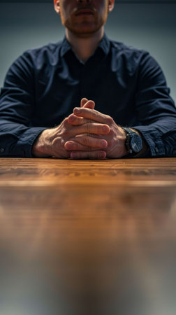 Fingers tapping anxiously on a table, waiting for news, tension in the air