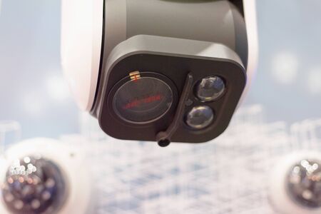 Security CCTV camera or surveillance system in office building, Intelligent cameras can record video all day and night to keep you safe from thieves. Surveillance camera Anti-theft system concept.