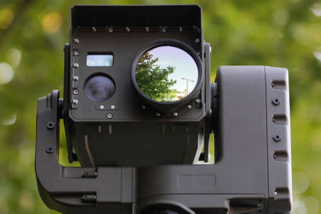 Bucharest, Romania - September 18, 2020: Various professional surveillance cameras (infrared, thermal) mounted on a Romanian Border Police vehicle.