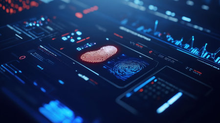 Modern digital fingerprint scanner for secure biometric identity access and protection. Concept Biometric Security, Digital Access Control, Identity Protection, Fingerprint Scanner, Modern Technology