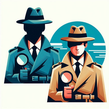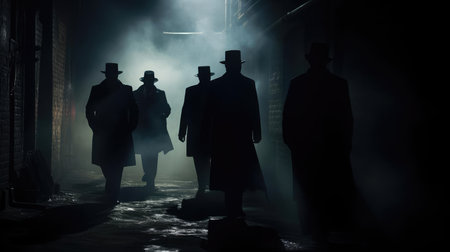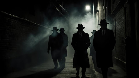 Mysterious detective in vintage hat and coat with dramatic lighting.