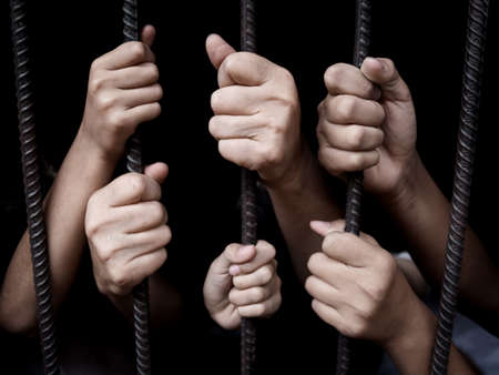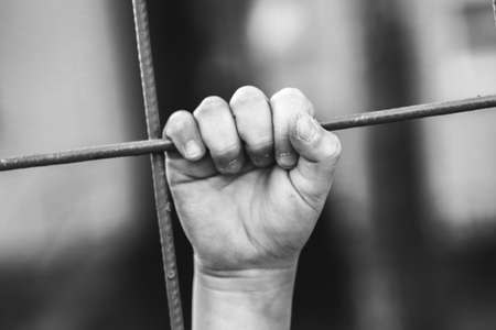 hand of a prisoner grabbed the bars of the prison