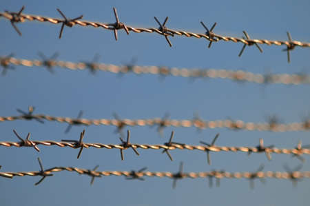 barbed wire fence too keep out burglars from home and keep in prisoners in imprisonment