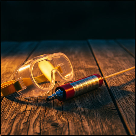 Closeup of a hand holding an improvised explosive device, studio shot