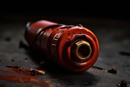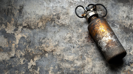 A close-up view of a rusty gas cylinder placed on a textured concrete surface, showcasing the wear and age of industrial equipment with a vintage aesthetic.
