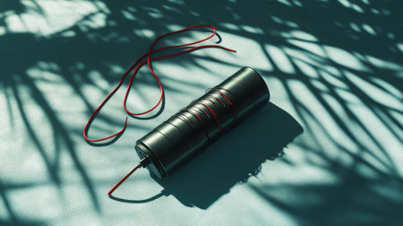 This visually striking image features a decorative cylindrical object with a red string, casting intricate shadows on a textured surface. Perfect for modern design concepts.