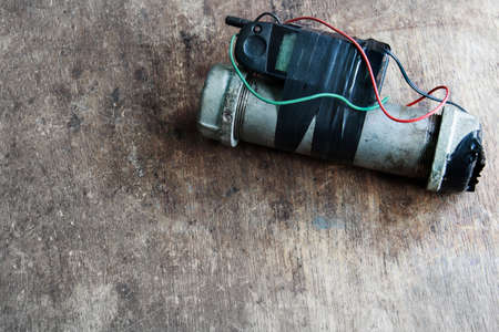 Steel pipe explosive (IED) is ignited by cell phone.For texture and background.