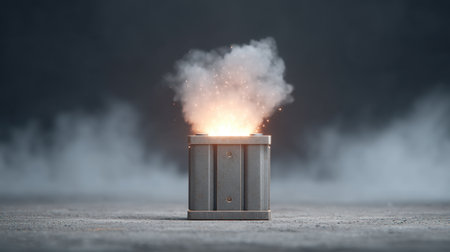 Photo of lithiumion battery fire illustrating safety hazards and risks emphasizing the importance of fire prevention. Concept Fire Safety, Lithium-ion Batteries, Fire Hazards, Risk Prevention