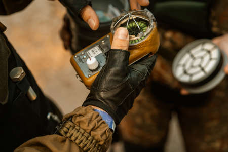 bomb disposal, explosives. hand nippers defuses the bomb.