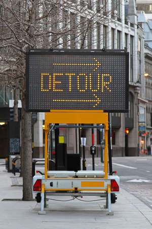 Detour traffic sign informing motorists that they'll have to use an alternate route