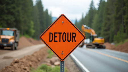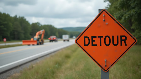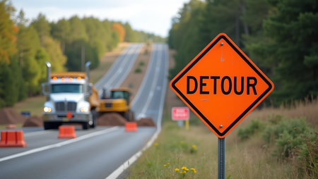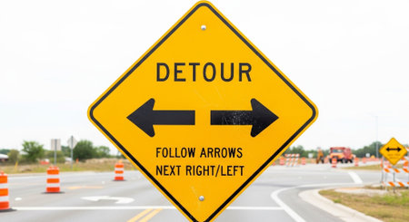 Detour Sign at Road Construction Site