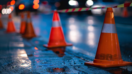 car accident scene with police tape and traffic cones, created with generative ai