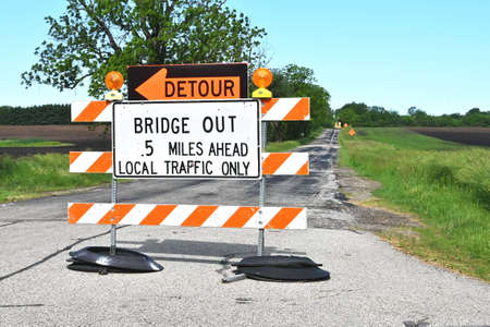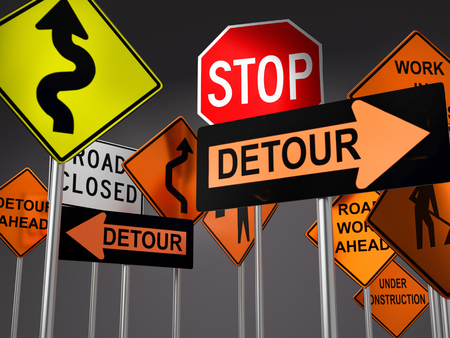 Road construction with detour sign