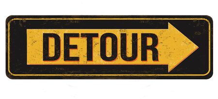 Detour vintage rusty metal sign on a white background, vector illustration