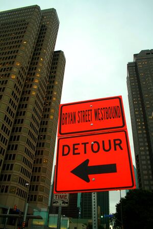 Close up bent detour sign