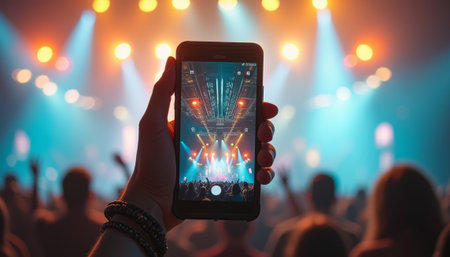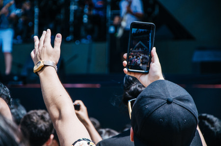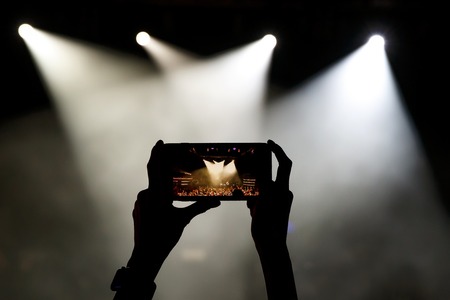 Making video recordings and pics on a smartphone at the concert or light show for publishing on social media.