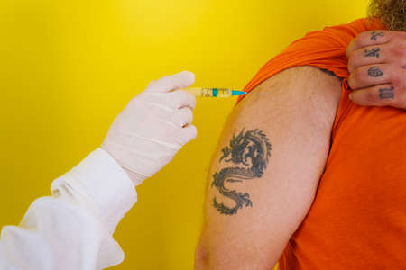 man with beard and tattoos does vaccine