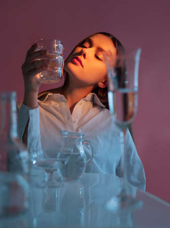 Young woman drinks a glass of water