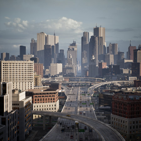 View of abandoned downtown of Detroit, Michigan