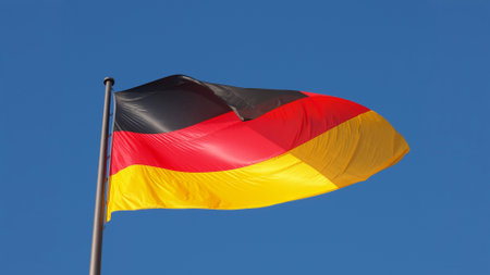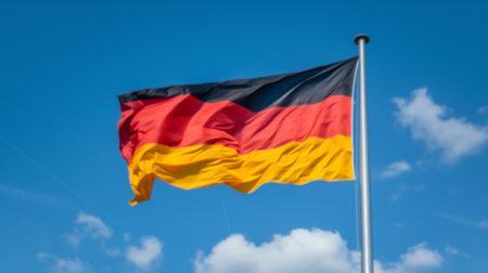 The flag of Germany flaunting on the wind under a blue sky