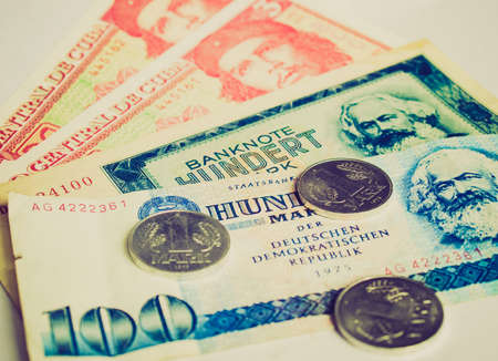 Vintage looking Vintage banknotes with Karl Marx (from DDR) and Che Guevara (from Cuba)