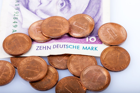 Old banknotes, German German Mark, 10 and 20 Mark different Series banknotes from 1970 and 1990