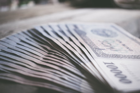 Uzbek banknotes on wooden background. Currency. Uzbek Money. Fifty Thousand Uzbek Sums 50000