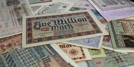 Vintage withdrawn banknotes of Soviet Union, German Democratic Republic and German Empire