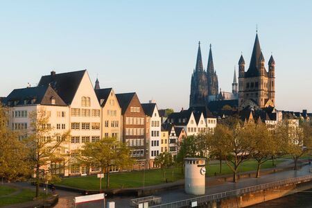 Great St. Martin Churchand and colorful houses of Cologne. Cologne, North Rhine-Westphalia, Germany,