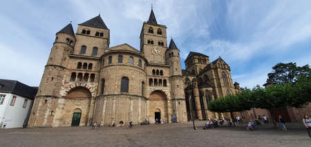 Trier Germany July, 23 2020 in the afternoon with wide-angle view of the Trier Cathedral in beautiful weather with blue sky
