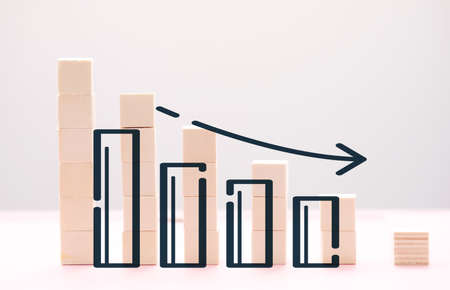 Recession or recovery on wooden blocks. Business and finance concept. Cross processed image with bokeh background