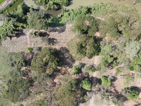 UAV Aerial photography top view forest tree drougth dry rain and farm countryside