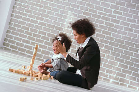 Black businessman mother playing with her children together in the house learning concept