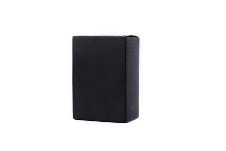 A sleek black round box displayed on a soft surface, showcasing its smooth texture and minimalistic design. Perfect for elegant packaging or decorative uses.