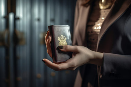 Generative AI : Close up hands woman is picking and holding passport and boarding pass Looking information board at airport terminal