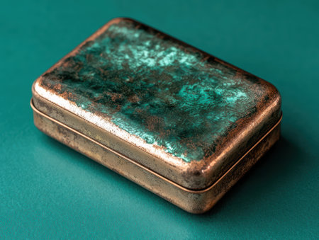 A weathered wooden box placed on a rustic tabletop with subtle natural lighting, exuding a sense of history and charm.