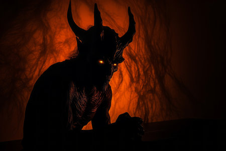 a devil with horns and red eyes in the dark
