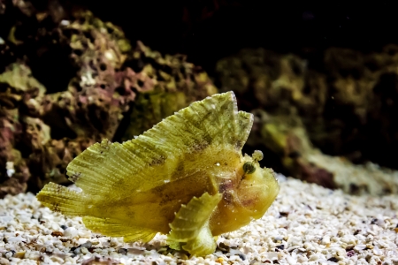 yellow leaf scorpionfish under deep water