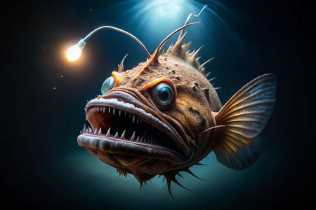 Deep Sea Anglerfish with Light, Dramatic Underwater Scene