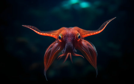 A captivating image of a deep-sea nosferatu squid drifting in the inky depths