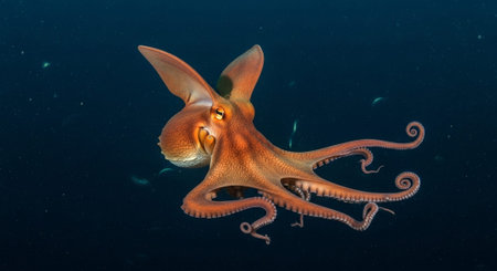 A rare Dumbo octopus gracefully swimming in the deep sea