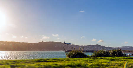 Wellington, New Zealand - January 04, 2019: Aerial View from an Airplane Window flying over wellington, New Zealand