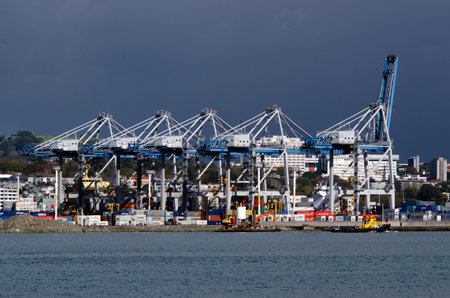 AUCKLAND,NZ - MAY 29:Container cranes on Fergusson Wharf at Ports of Auckland on May 29 2013.It's New Zealand's largest commercial port, its turnover of more than NZ$20 billion per year