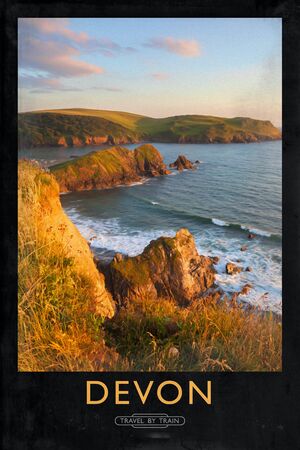 View from the costal path near Polzeath, Cornwall Vintage Retro Filter.