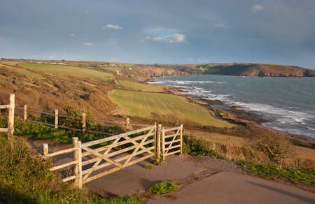 Cornwall countryside and coast at St Austell Bay Cornwall from Black Head headland near Trenarren