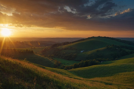 Sunset over rolling hills in the Carpathian Mountains, Ukraine